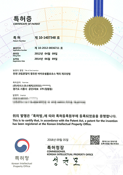 이시스코스메틱은 꾸준한 R&D를 통해 국내외 특허를 다수 확보하고 있습니다.