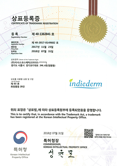 이시스코스메틱은 꾸준한 R&D를 통해 국내외 특허를 다수 확보하고 있습니다.